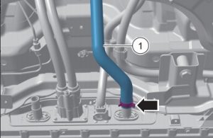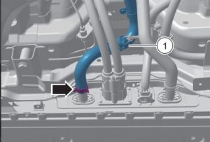 松開電池進水管固定卡箍,脫開電池進水管1動力電池系統總成的連接