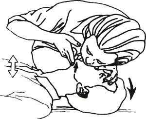 該類人員應該采用口對口人工呼吸法進行急救。人工呼吸法可按下述口訣進行,頻率是每分鐘約12次: