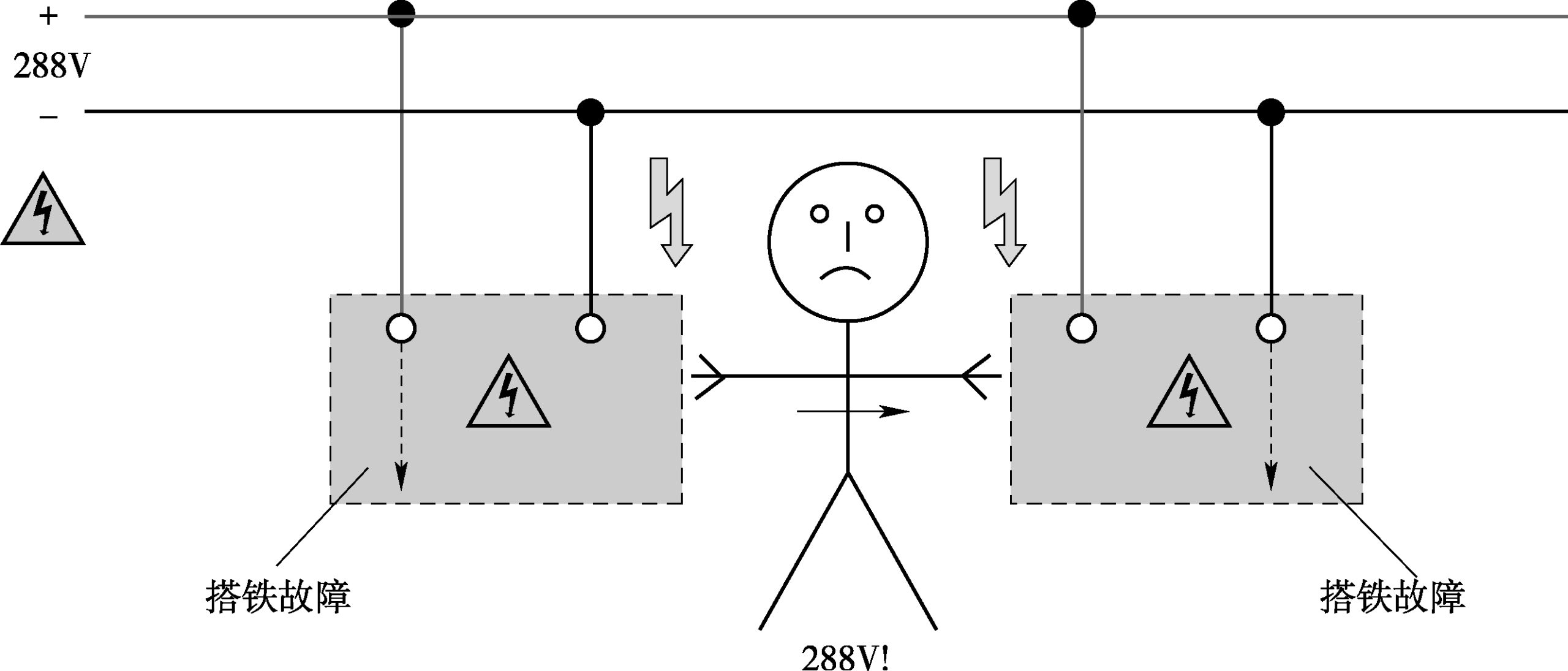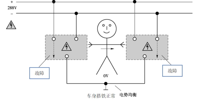 ? ? ? ?觸電情況:當新能源汽車的高電壓部件發(fā)生對車身搭鐵故障時,人體在同樣的情況下就有可能發(fā)生觸電事故。